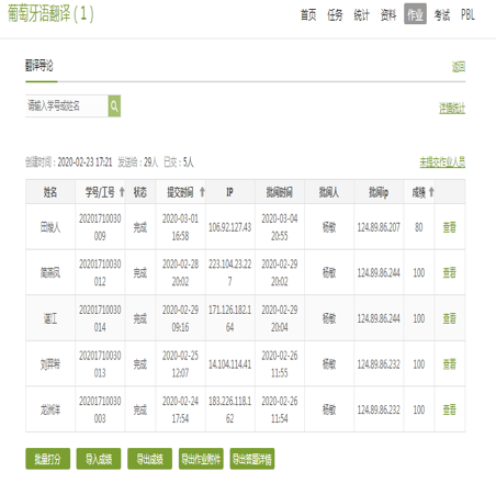 在线作业批改情况