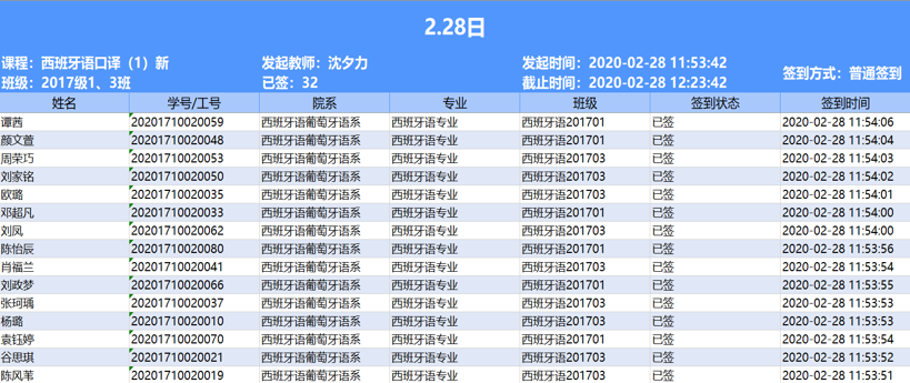 沈夕力老师的课堂签到记录