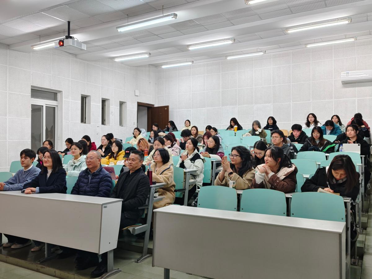 重庆师范大学计算机与信息科学学院教授、硕士研究生导师,电子商务专业带头人,教育部高等学校电子商务类专业教学指导委员会委员,全国电子商务职业教育教学指导委员会骨干专家,中国信息经济学会电子商务专委会常务理事,全国电子商务数字教育发展联盟常务理事,川渝数字经济教育协同创新共同体主任李明教授作为特邀专家为大家分享赛事经验,提供赛事指导。全校多个专业、多个年级的学生踊跃参会。西方语言文化学院党总支书记苏雪、副书记侯丽娟,专业教师曾睿、李左娜,中国语言文化学院王琥副教授莅临宣讲会现场。宣讲会由多语种学社刘馨园同学主持。