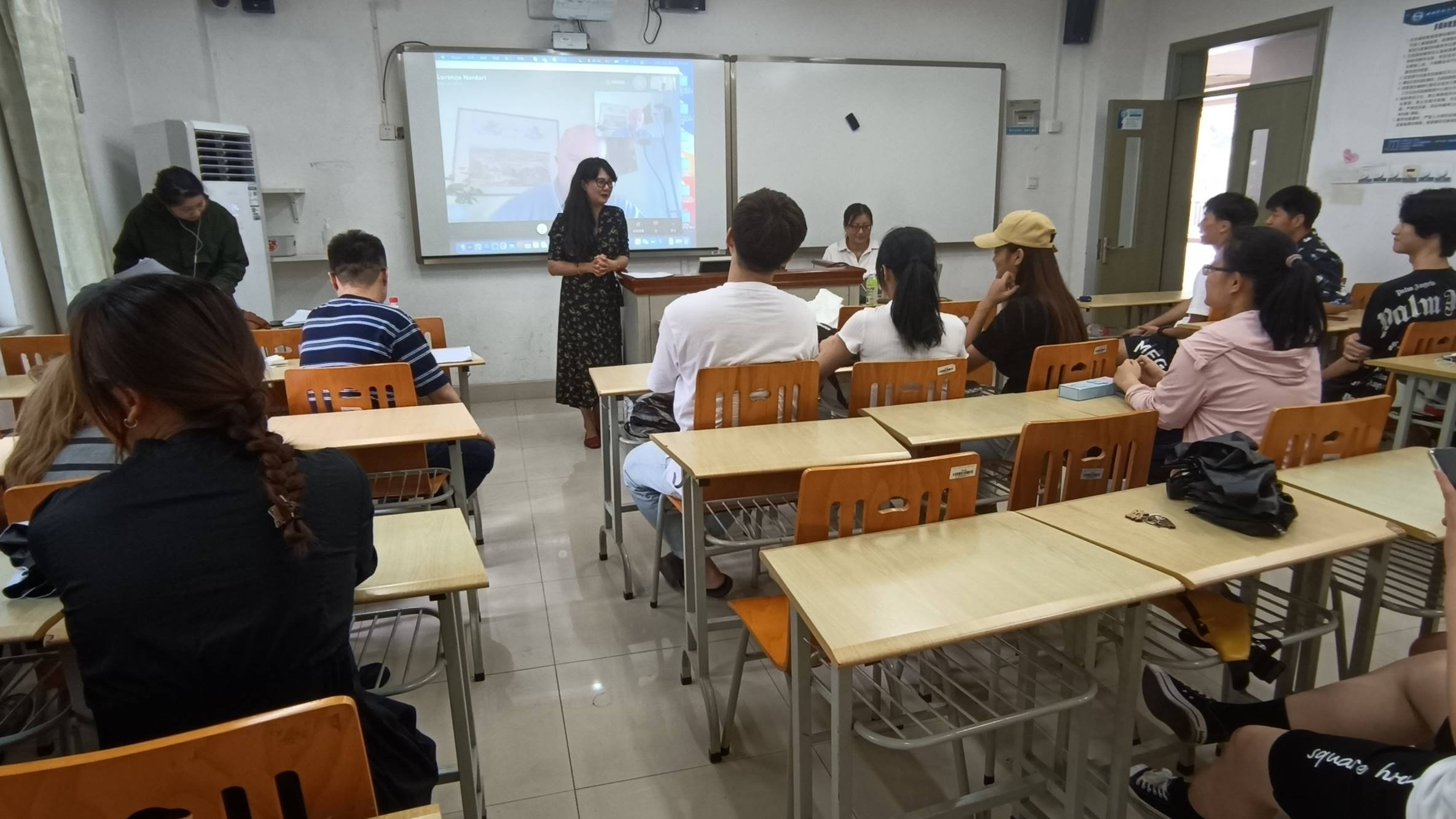 下午四点,由Lorenzo Nardari 老师发起的意大利语“《神曲》中的修辞”趣味活动在C309准时展开。2019级全体学生参与了本次活动,同时,陈英老师、秦昕婕老师以及崔鹏飞老师也莅临本次活动现场;Lorenzo Nardari 老师虽然远在意大利,也同样以直播连线的方式远程参与。