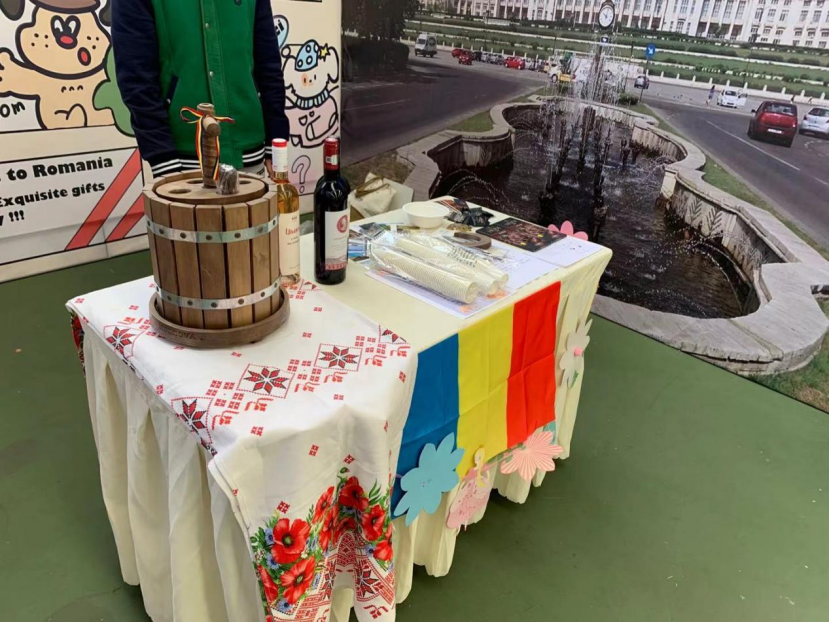 在罗马尼亚语展区,你可以品尝美酒,并领略当地独特美食——面包蘸盐,这是罗马尼亚人招待客人的最高礼节。此外,展区内还设置了“你画我猜”等与罗马尼亚语相关的互动游戏以及罗马尼亚国情知识问答。参与游戏或回答问题即可获得罗马尼亚钱币纪念品、邮票、明信片、巧克力等丰富的礼品。