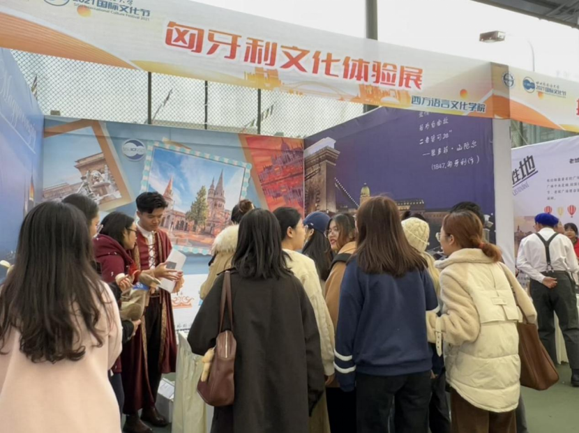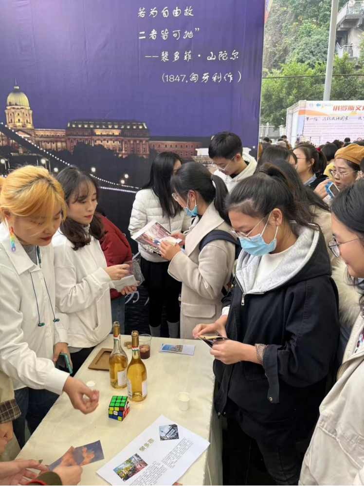 在匈牙利语展区,回答出有关匈牙利文化的相关问题,并且学习一句匈牙利语之后,即可赢得匈牙利特色的明信片或者品尝匈牙利名酒——有“酒中之王,王室之酒”美称的托卡依。除此之外,还可以挑战由匈牙利人发明的魔方,并使用展台提供的展板进行拍照打卡。