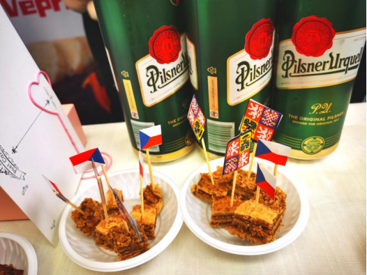 在捷克语展区,摆放着捷克啤酒、美食、明信片、贴纸和小鼹鼠玩偶,通过参加捷克国情知识问答活动,可以品尝到捷克的皮尔森啤酒和蜂蜜蛋糕,并获得一张可爱的小贴纸。