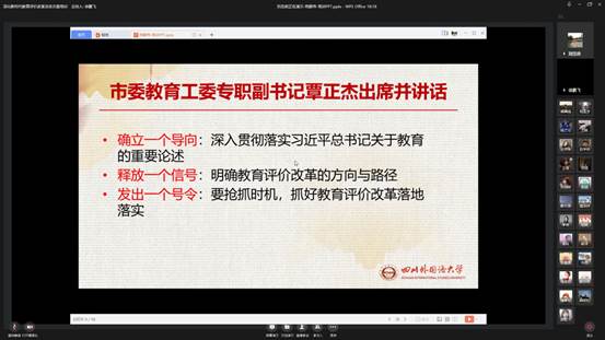 他指出,教育是国之大计,党之大计,教育评价事关教育发展的方向,该《总体方案》就是教育教学评价改革的最新“风向标”和最新“指挥棒”。他强调,近年来我国虽然在教育方面取得了丰硕的成果,但是面对当前深刻、复杂、多变的国内外形势,教育还面临许多困难和挑战。因此,进行教育教学评价改革具有重要意义,他对“为什么改”、“改什么”和“怎么改”进行了深入阐释,同时强调要准确把握《总体方案》的主要特点、内容精神,认真贯彻落实有关工作要求。