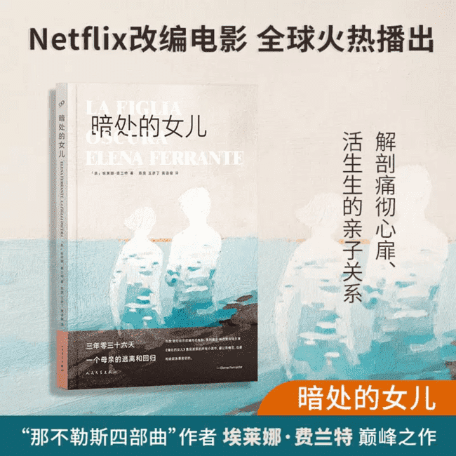 作品简介: 《暗处的女儿》是费兰特探索母女关系的重要作品,小说改编的同名电影入围2021年威尼斯电影节主竞赛单元,2021年底登陆Netflix。