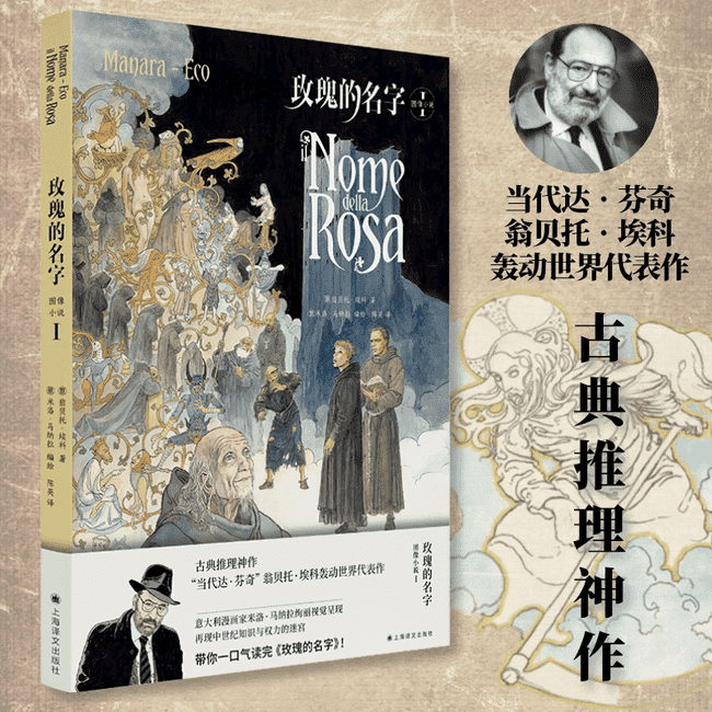 作品简介:《玫瑰的名字》是翁贝托·埃科的代表作,被誉为“密码型推理小说”的始祖,在推理文学大国日本甚至被选为“这本推理小说了不起”大奖创设20年以来总评榜第一名。故事发生在中世纪的一座修道院,修士威廉与弟子阿德索来到修道院,为皇帝与教皇的调解做准备。二人刚到达,修道院就发生了命案。精于推理的威廉受院长委托着手调查,但命案并没有停止,每天都有一个人死于非命。修道院里那座迷宫一样的藏书馆蕴含着诸多秘密。当秘密被揭穿之际,命案也真相大白。最后,修道院在大火中付之一炬。《玫瑰的名字》图像小说将分两册出版,由意大利著名漫画家米洛.马纳拉操刀,通过绮丽的画风和对小说场景的忠实再现,为在《玫瑰的名字》门外徘徊的读者打造了一条捷径。它极大满足了熟悉《玫瑰的名字》的读者对于故事背景和各种或现实或梦幻的场景的想象,也将帮助没能读完小说的读者轻松地享受这部杰作。