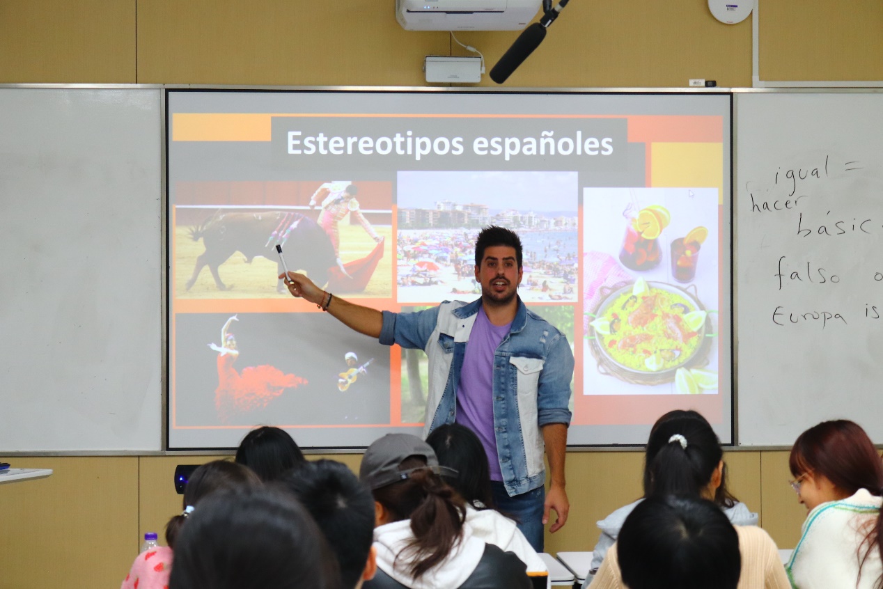 当Alberto介绍完西班牙各地的不同风俗之后,便进入第二个互动环节:打破对西班牙的刻板印象。通过Alberto对西班牙不同习俗的解读,同学们更加深刻地了解了西班牙文化与中国文化的不同。