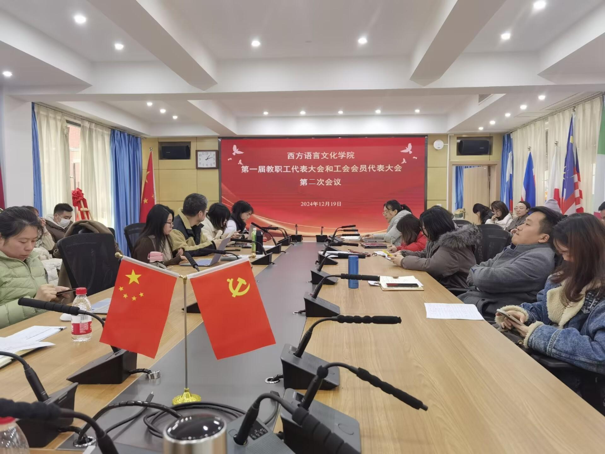 2024年12月19日,西方语言文化学院在文轩楼103会议室举行了第一届教职工代表大会和工会会员代表大会第二次会议,全体工会会员参加了会议。工会主席申义兵主持会议。