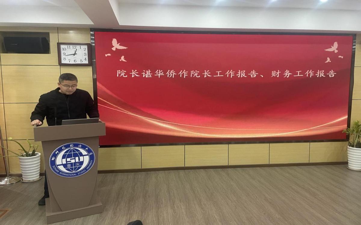 首先,院长谌华侨作了院长工作报告和财务工作报告。谌华侨院长向全体工会会员汇报了2024年学院在人才培养、师资队伍建设、科学研究、学科专业建设、国际交流与合作、社会服务及学院管理运行等方面的显著成就,并对学院未来的发展进行了展望。他在财务工作报告中详细汇报了学院的财务状况,确保学院财务运行和经费使用的合规、公开和透明。