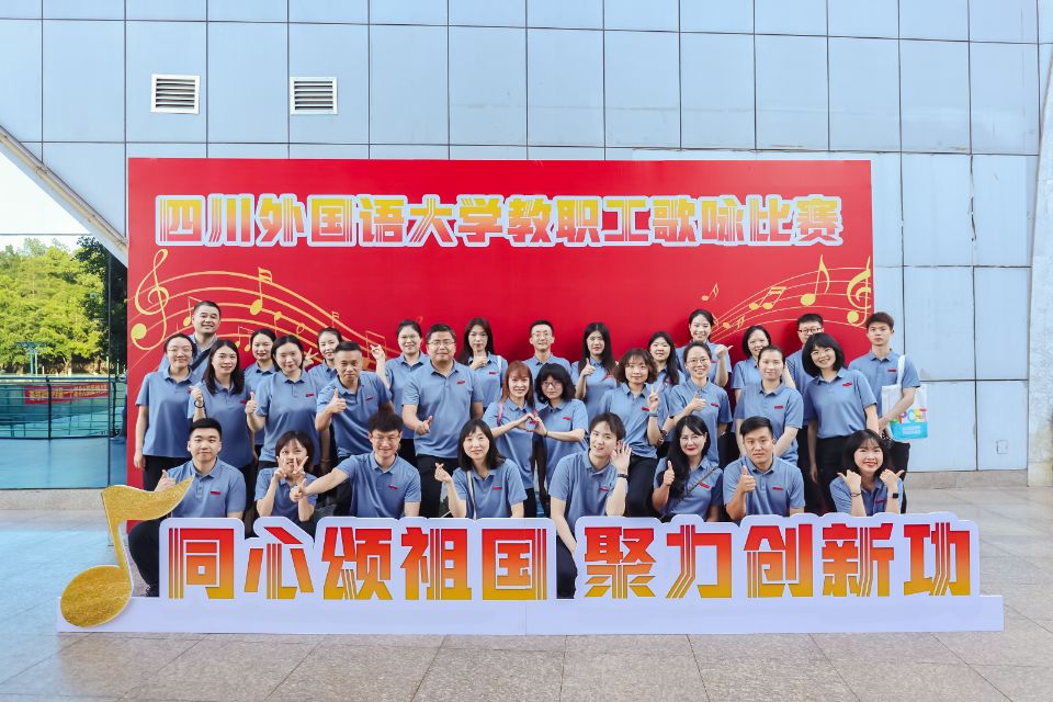 西方语言文化学院教师合唱团的成员分别来自学院领导、9个语种的专业教师和全体学工人员。非常荣幸的是学校党委书记邹渝也加入了学院教师合唱团,这极大地鼓舞了全体成员,增强了大家的信心和动力。老师们用深情悠扬的歌声表达了对学校和祖国的深情厚爱,对教育事业的坚定执着和对美好未来的期盼和祝愿。经过角逐,学院教师合唱团荣获了“最佳风采奖”。