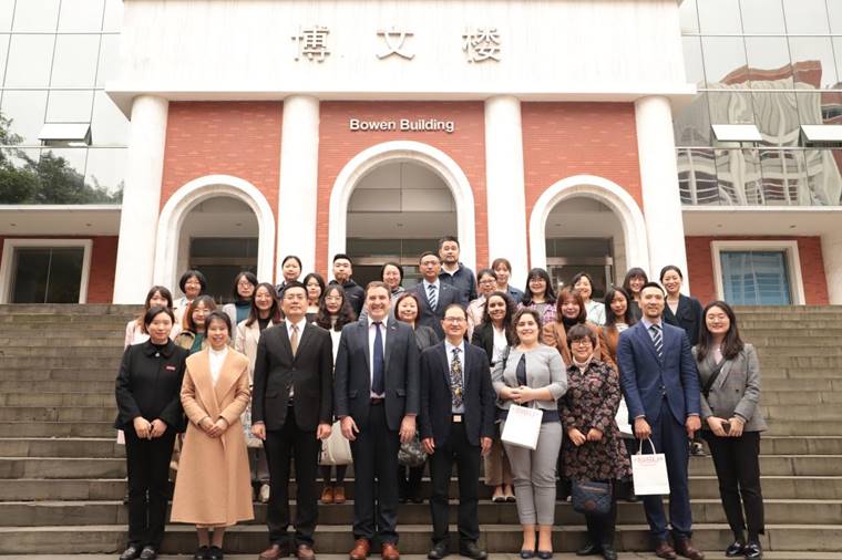 费尔南多·卢格里斯大使非常感谢西方语言文化学院对其一行的接待。他提到,这是他第二次到访川外,看到学院至今还保留着有他亲笔签名的足球,他表示非常感动。同时他还回忆说,第一次到访川外是在探讨初步的合作意向,但本次到访则有了许多实质性的进展。接着,他表示乌拉圭驻重庆总领事馆将永远敞开怀抱,为促进中乌两国的交流提供大力支持。大使先生还说,乌拉圭是一个双语国家,除了讲西班牙语外,还讲葡萄牙语,因此他对此次能见到葡萄牙语专业的老师而感到由衷地开心,并赞扬川外在外语人才培养方面取得的巨大成就。最后,他还提到,乌拉圭地理位置优越,是进入拉美国家的门户,也是留学和旅游的优选地,期待川外师生未来去乌拉圭留学或旅游。