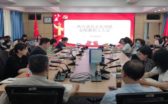2023年4月21日下午,西方语言文化学院在文轩楼103会议室召开了全院教职工大会。
