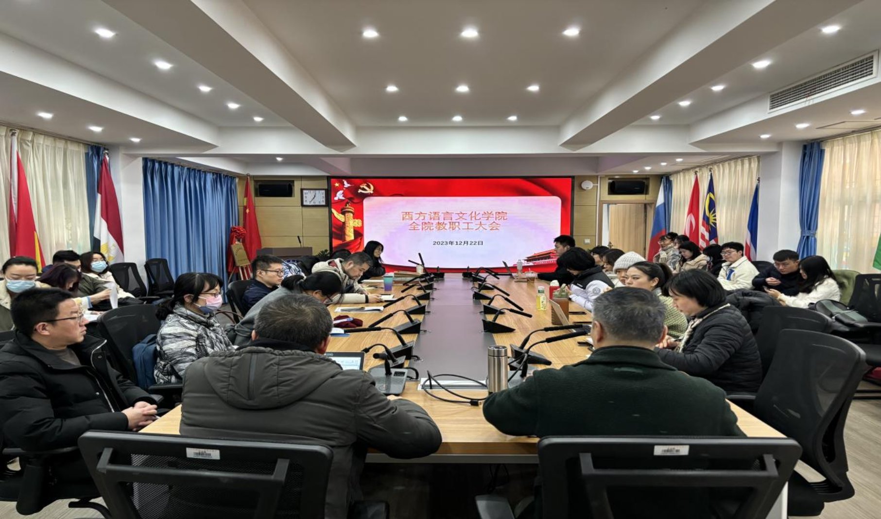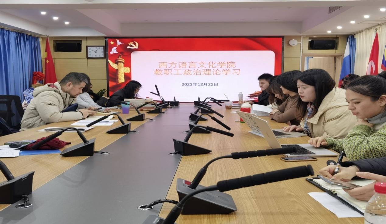 西方语言文化学院召开全体教职工大会暨2023年12月份教职工政治理论学习